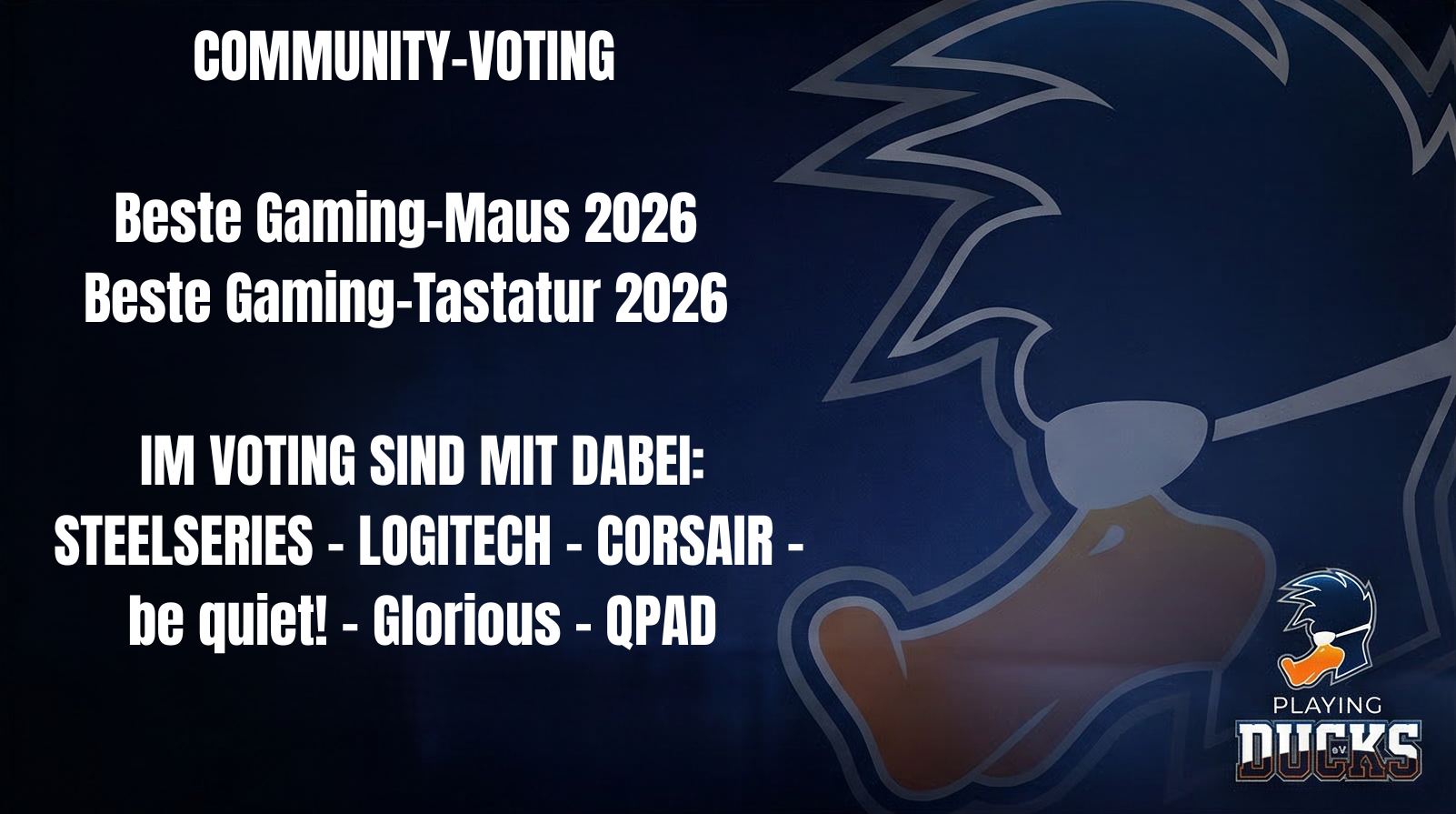 Der Playing Ducks e. V. ist ein Verein aus Peine (Niedersachsen) und besteht seit über 18 Jahren. Entstanden aus der gemeinsamen Leidenschaft für Gaming und den sportlichen Wettbewerb, hat sich der Verein über viele Jahre erfolgreich weiterentwickelt.